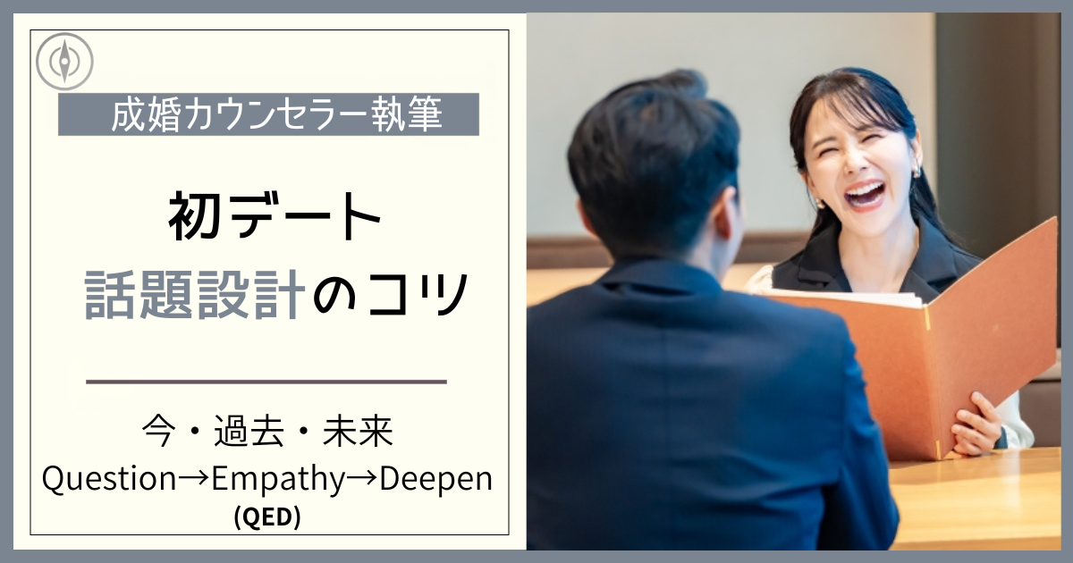 成婚カウンセラーお見合いの延長で「質問→回答→次の質問」を続けると、初デートは途中で失速しやすいです。ここからは“会話を組み立てる”視点で整理します。